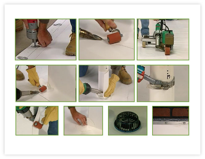 在外露工程機械固定法施工時,根據經驗,非加強型的材料在負風壓力作用下,出現(xiàn)反復拉伸,導致累積塑性變形,出現(xiàn)卷材斷裂、固定點劈裂、收頭脫落等破壞。凱倫公司凱倫PVC防水卷材織物內增強型提高了抗拉力、撕裂強度及耐穿刺性等性能,從而進一步提高了對機械固定工法的適用性,加上完整的配套材料,使該系統(tǒng)特別適合用于單層屋面工程。