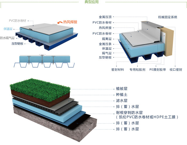 ● 工業(yè)與民用建筑的外露式屋面防水。